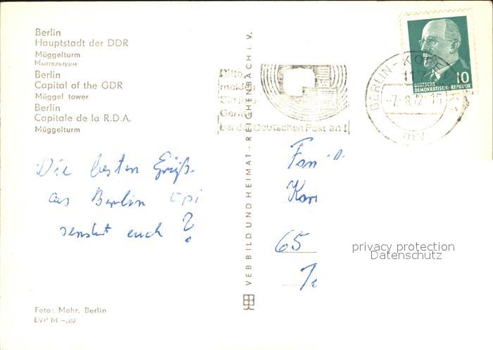 72534524 alte Postkarte BERLIN CITY Mueggelturm postalisch gelaufen Erhaltung siehe scans [AndreD76 kt121box] KatCode: 11110011000000