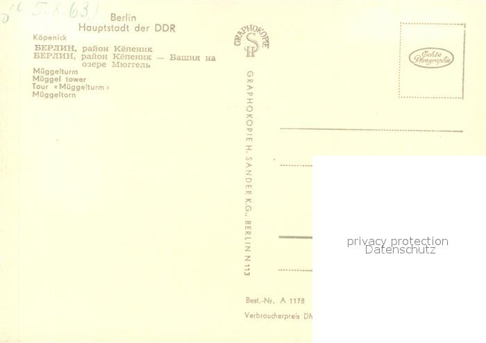 73122109 BERLIN CITY Mueggelturm postalisch nicht gelaufen Erhaltung siehe scans [NatalD47] KatCode: 11110011000000
