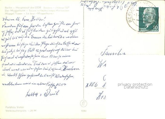 72372210 alte Postkarte BERLIN CITY Mueggelturm postalisch gelaufen Erhaltung siehe scans KatCode: 11110011000000