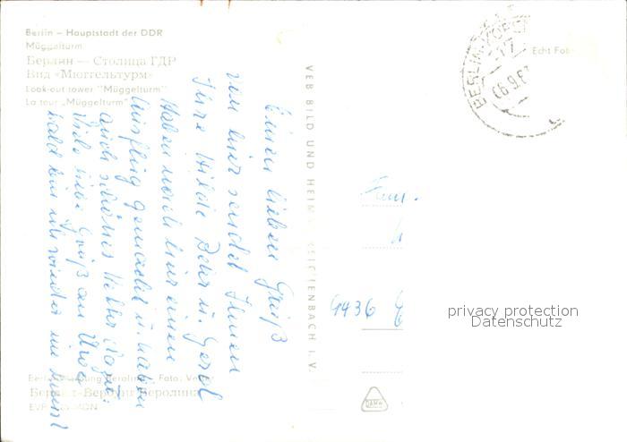 72281622 alte Postkarte BERLIN CITY Mueggelturm postalisch gelaufen Erhaltung siehe scans KatCode: 11110011000000