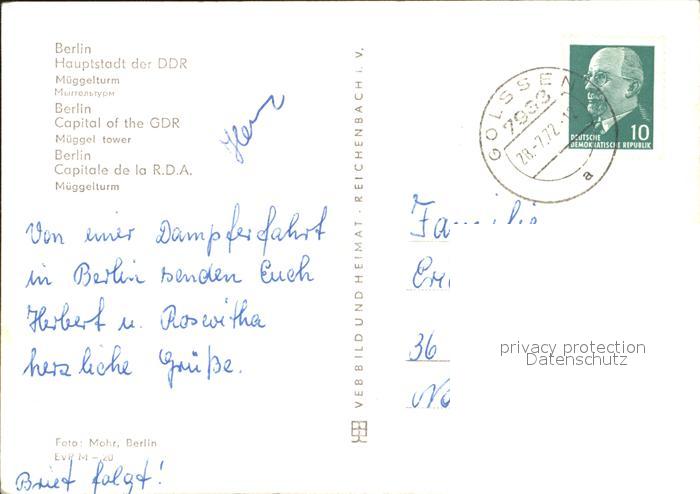 72182393 alte Postkarte BERLIN CITY Mueggelturm postalisch gelaufen Erhaltung siehe scans KatCode: 11110011000000
