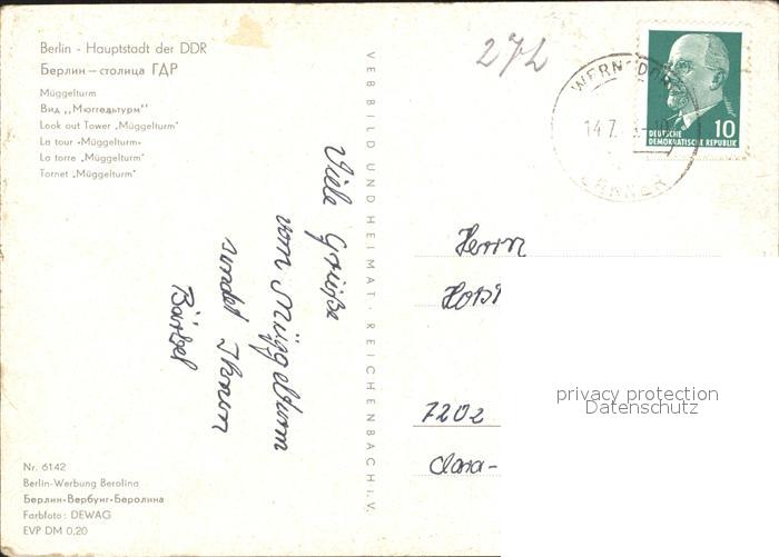 72063100 alte Postkarte BERLIN CITY Mueggelturm postalisch gelaufen Erhaltung siehe scans KatCode: 11110011000000