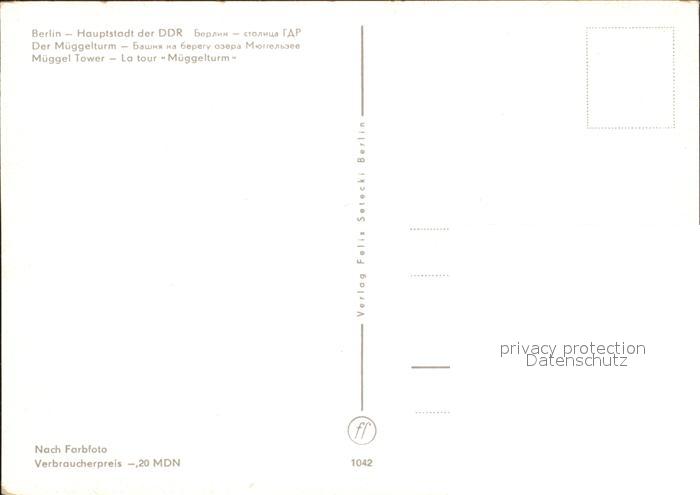 72060108 BERLIN CITY Mueggelturm postalisch nicht gelaufen Erhaltung siehe scans KatCode: 11110011000000
