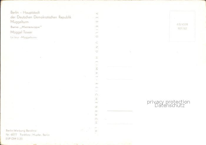 72052758 BERLIN CITY Mueggelturm Hauptstadt der DDR postalisch nicht gelaufen Erhaltung siehe scans KatCode: 11110011000000