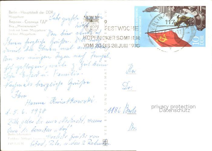 72338711 alte Postkarte BERLIN CITY Mueggelturm Hauptstadt der DDR postalisch gelaufen Erhaltung siehe scans KatCode: 11110011000000