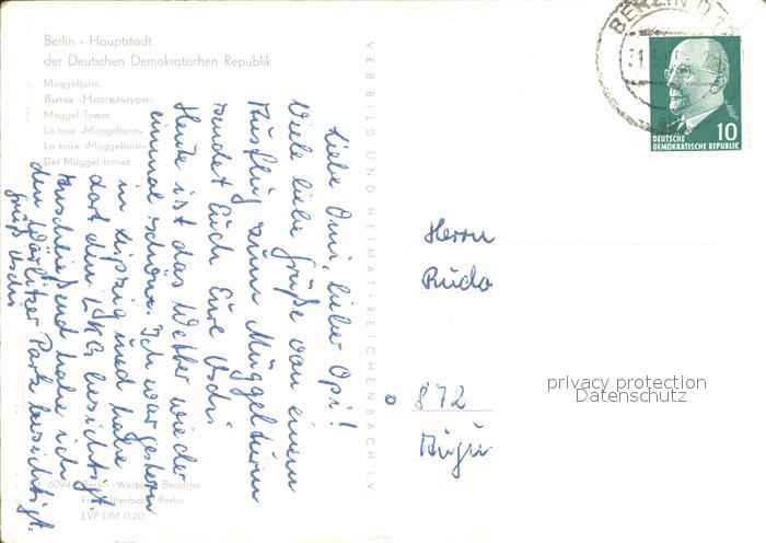 72257801 alte Postkarte BERLIN CITY Mueggelturm Hauptstadt der DDR postalisch gelaufen Erhaltung siehe scans KatCode: 11110011000000