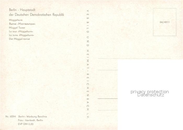 73129662 BERLIN CITY Mueggelturm postalisch nicht gelaufen Erhaltung siehe scans [NatalD47] KatCode: 11110011000000