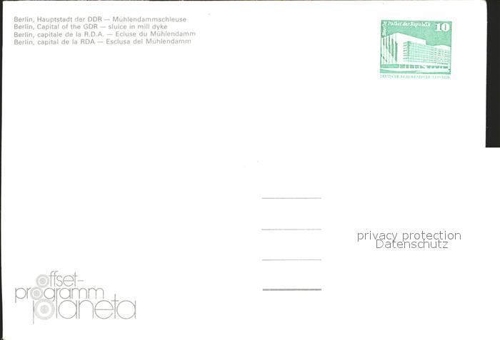 72260966 BERLIN CITY Muehlendammschleuse postalisch nicht gelaufen Erhaltung siehe scans KatCode: 11110011000000