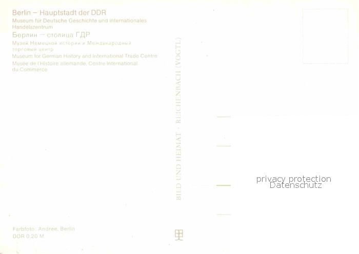 72848909 BERLIN CITY Museum fuer Deutsche Geschichte Internationales Handelszentrum Hauptstadt der DDR postalisch nicht gelaufen Erhaltung siehe scans [FriedD77] KatCode: 11110011000000