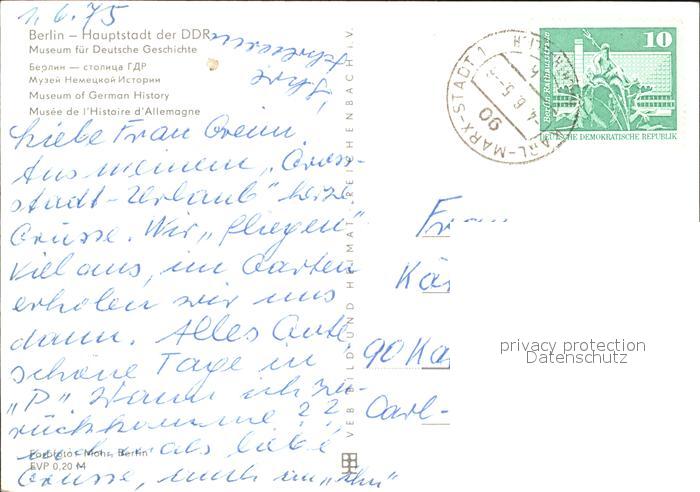 72113920 alte Postkarte BERLIN CITY Museum fuer Dt Geschichte postalisch gelaufen Erhaltung siehe scans KatCode: 11110011000000