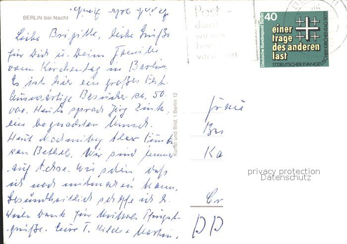 72368233 alte Postkarte BERLIN CITY Nacht Gedaechtniskirche postalisch gelaufen Erhaltung siehe scans KatCode: 11110011000000