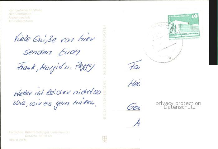 72544754 alte Postkarte BERLIN CITY Neptunbrunnen Alexanderplatz Fernsehturm postalisch gelaufen Erhaltung siehe scans [NatalD47 kv014box] KatCode: 11110011000000