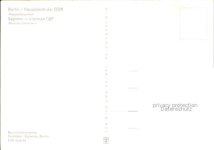 72247084 BERLIN CITY Neptunbrunnen Hauptstadt der DDR postalisch nicht gelaufen Erhaltung siehe scans KatCode: 11110011000000