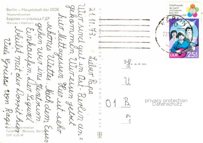 72617793 alte Postkarte BERLIN CITY Neptunbrunnen Hauptstadt der DDR postalisch gelaufen Erhaltung siehe scans [FriedD77] KatCode: 11110011000000