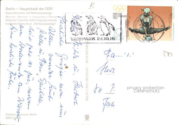 72036471 alte Postkarte BERLIN CITY Neptunbrunnen mit Rathauspassage postalisch gelaufen Erhaltung siehe scans KatCode: 11110011000000