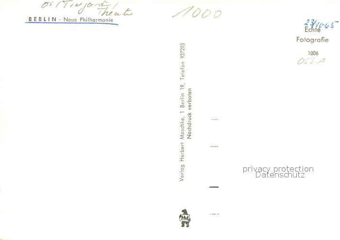 72958532 BERLIN CITY Neue Philharmonie postalisch nicht gelaufen Erhaltung siehe scans [PaolaD17] KatCode: 11110011000000