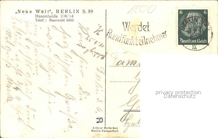 41789936 BERLIN CITY Neue Welt postalisch gelaufen Erhaltung siehe scans Alte Ansichtskarte Postkarte alte Postkarte Nata Katcode 11110011000000