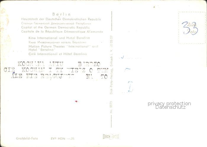 Hotel Berolina und Kino International postalisch nicht gelaufen Erhaltung siehe scans KatCode: 11110011000000