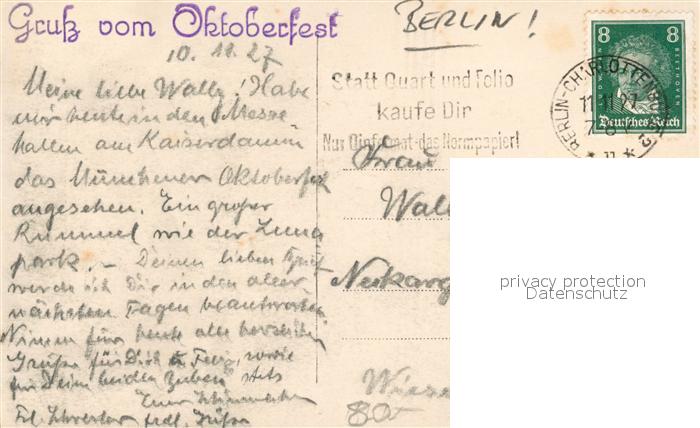 43292070 BERLIN CITY Oktoberfest postalisch gelaufen Erhaltung siehe scans [KathaD81] alte Postkarte Kath Katcode 11110011000000