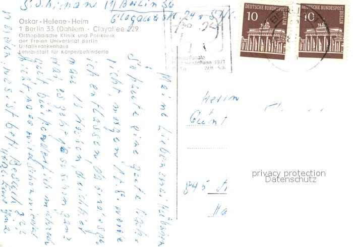 73116950 alte Postkarte BERLIN CITY Oskar Helene Heim Dahlem postalisch gelaufen Erhaltung siehe scans [LiesaD40] KatCode: 11110011000000