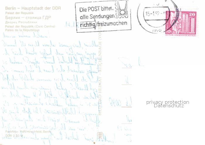72687948 alte Postkarte BERLIN CITY Palast der Republik postalisch gelaufen Erhaltung siehe scans [NatalD47] KatCode: 11110011000000