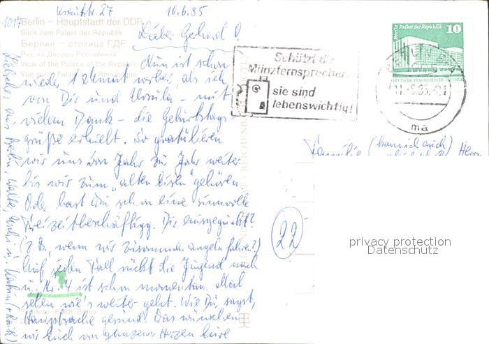 72148715 alte Postkarte BERLIN CITY Palast der Republik bei Nacht postalisch gelaufen Erhaltung siehe scans KatCode: 11110011000000