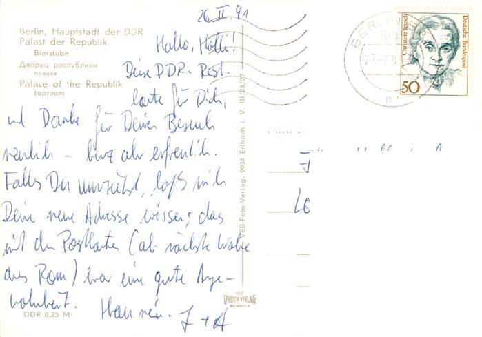 73897666 BERLIN CITY Palast der Republik Bierstube postalisch gelaufen Erhaltung siehe scans [FriedD77] alte Postkarte Frie Katcode 11110011000000