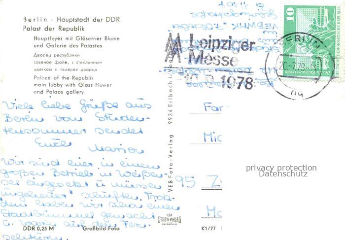 34145697 alte Postkarte BERLIN CITY Palast der Republik Hauptfoyer mit Glaeserner Blume und Galerie des Palastes postalisch gelaufen Erhaltung siehe scans [WerneD78] KatCode: 11110011000000