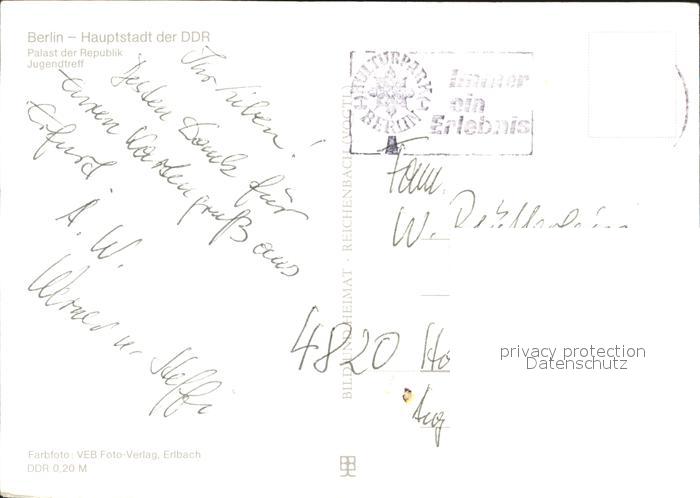72372222 alte Postkarte BERLIN CITY Palast der Republik Jugendtreff postalisch gelaufen Erhaltung siehe scans KatCode: 11110011000000