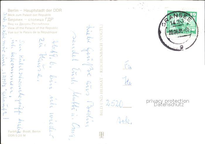 72247100 alte Postkarte BERLIN CITY Palast der Republik Nachtaufnahme postalisch gelaufen Erhaltung siehe scans KatCode: 11110011000000