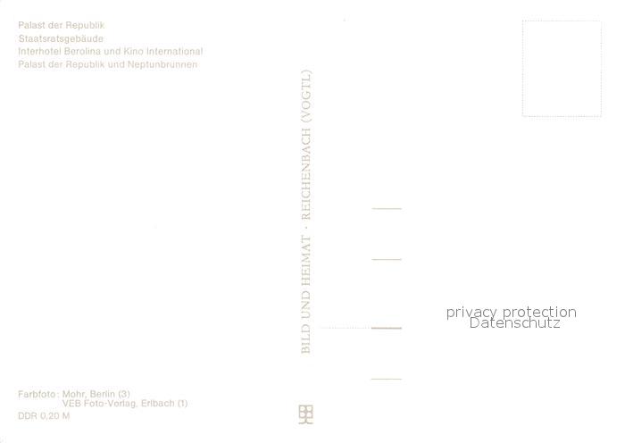 72953618 BERLIN CITY Palast der Republik Staatsratsgebaeude Interhotel Berolina Palast der Republik Neptunbrunnen postalisch nicht gelaufen Erhaltung siehe scans [WerneD78] KatCode: 11110011000000