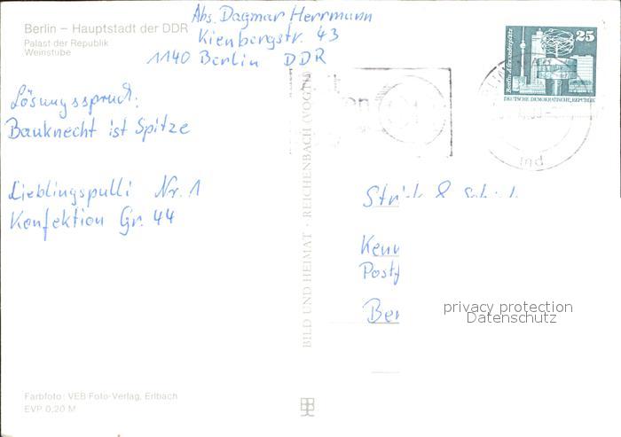 72459732 alte Postkarte BERLIN CITY Palast der Republik Weinstube postalisch gelaufen Erhaltung siehe scans KatCode: 11110011000000