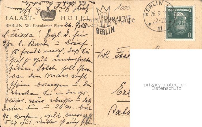 41574722 BERLIN CITY Palast Hotel postalisch gelaufen Erhaltung siehe scans Alte Ansichtskarte Postkarte alte Postkarte hz_W Katcode 11110011000000