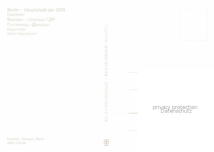 72709358 BERLIN CITY Palasthotel Hauptstadt der DDR postalisch nicht gelaufen Erhaltung siehe scans [FriedD77] KatCode: 11110011000000