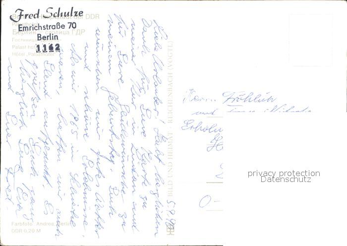 72599716 BERLIN CITY Palasthotel Hauptstadt der DDR postalisch nicht gelaufen Erhaltung siehe scans [FriedD77] KatCode: 11110011000000