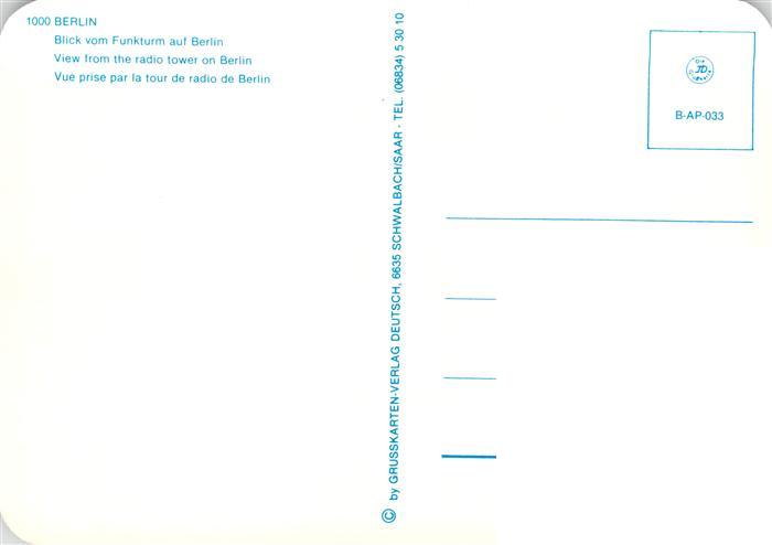 73896309 BERLIN CITY Panorama Blick vom Funkturm postalisch nicht gelaufen Erhaltung siehe scans [FriedD77] Frie Katcode 11110011000000