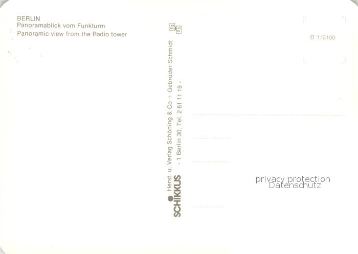 73022594 BERLIN CITY Panoramablick vom Funkturm postalisch nicht gelaufen Erhaltung siehe scans [WerneD78] KatCode: 11110011000000
