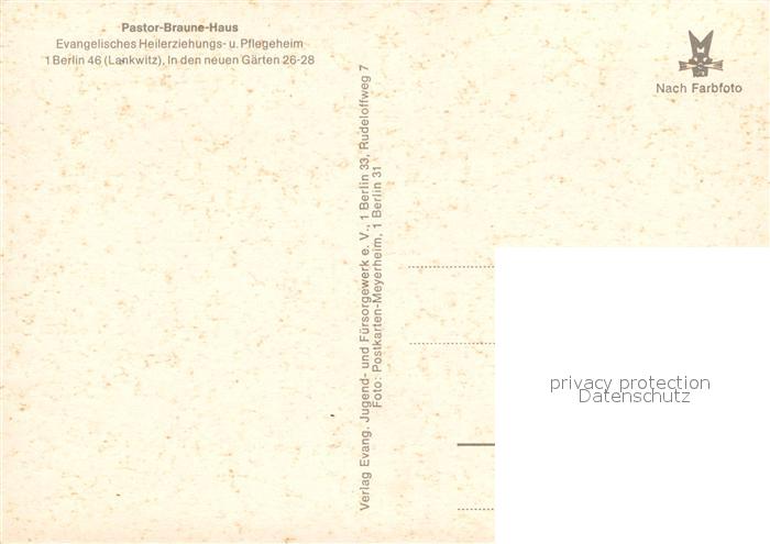 72967810 BERLIN CITY Pastor Braune Haus Pflegeheim postalisch nicht gelaufen Erhaltung siehe scans [LiesaD40] KatCode: 11110011000000