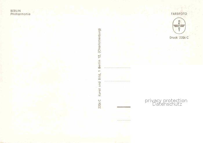 72859208 BERLIN CITY Philharmonie postalisch nicht gelaufen Erhaltung siehe scans [AndreD76] KatCode: 11110011000000