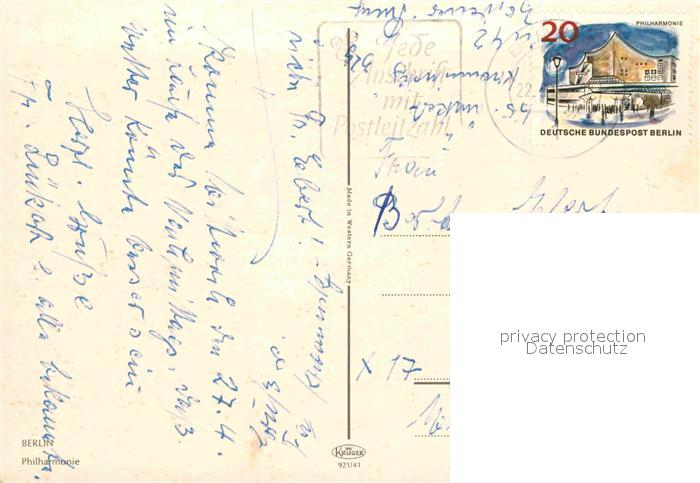 72625764 alte Postkarte BERLIN CITY Philharmonie postalisch gelaufen Erhaltung siehe scans [FriedD77] KatCode: 11110011000000