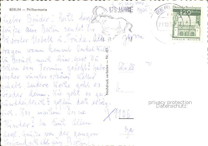 71976424 alte Postkarte BERLIN CITY Philharmonie postalisch gelaufen Erhaltung siehe scans KatCode: 11110011000000