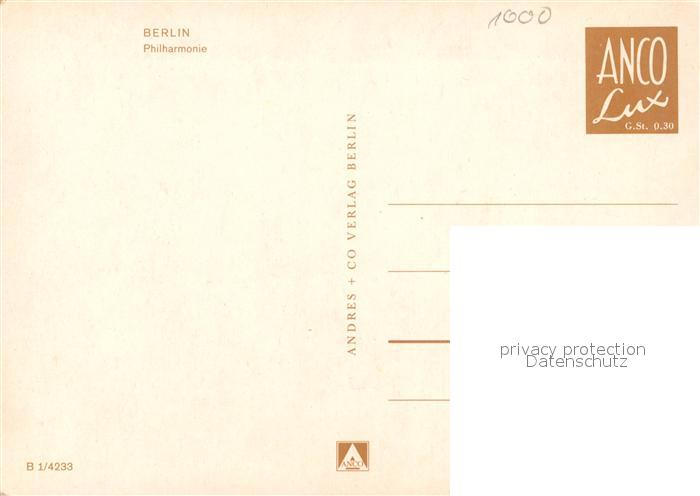 73021731 BERLIN CITY Philharmonie postalisch nicht gelaufen Erhaltung siehe scans [WerneD78] KatCode: 11110011000000
