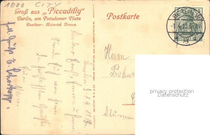 41790048 alte Postkarte BERLIN CITY Piccadilly postalisch gelaufen Erhaltung siehe scans KatCode: 11110011000000