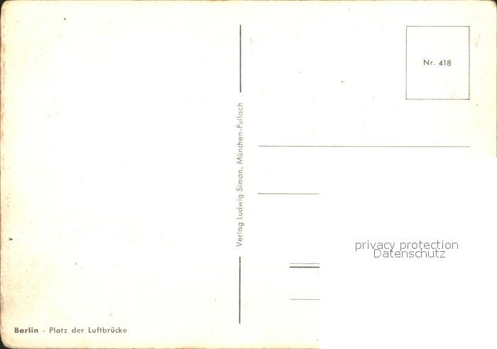 72077028 BERLIN CITY Platz der Luftbruecke postalisch nicht gelaufen Erhaltung siehe scans KatCode: 11110011000000