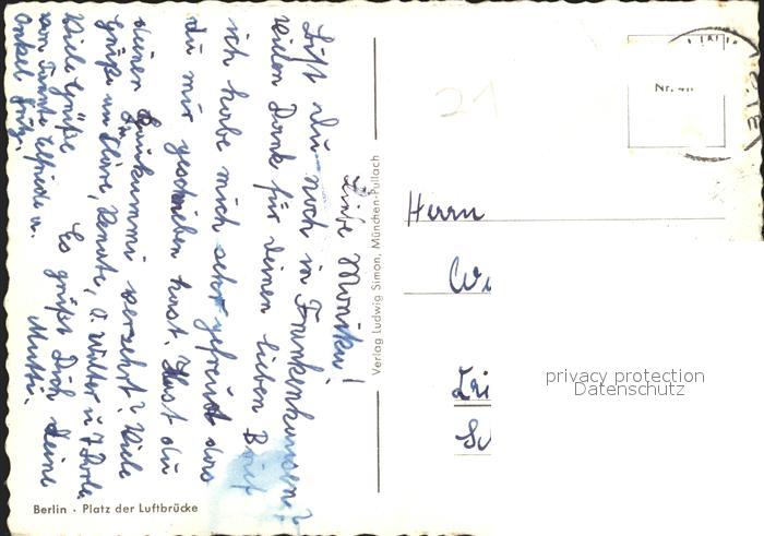 72008573 alte Postkarte BERLIN CITY Platz der Luftbruecke postalisch gelaufen Erhaltung siehe scans KatCode: 11110011000000