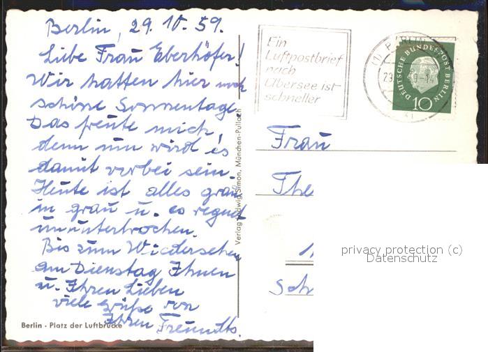41477591 BERLIN CITY Platz der Luftbruecke postalisch gelaufen Erhaltung siehe scans Alte Ansichtskarte Postkarte alte Postkarte hz_W Katcode 11110011000000