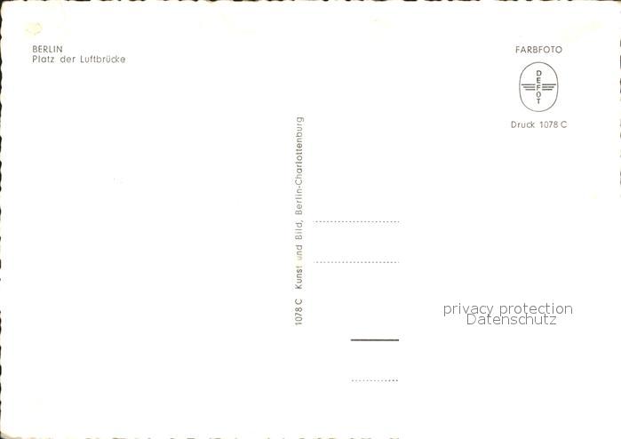 72296506 BERLIN CITY Platz der Luftbruecke Denkmal Flugzeug postalisch nicht gelaufen Erhaltung siehe scans KatCode: 11110011000000