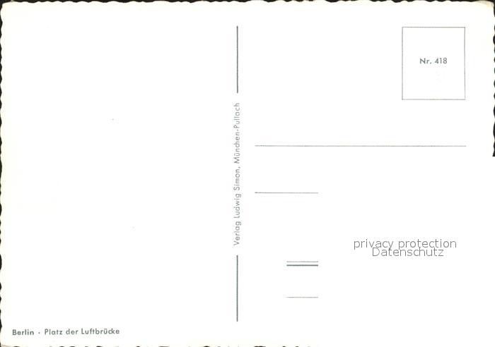 71998453 BERLIN CITY Platz Luftbruecke postalisch nicht gelaufen Erhaltung siehe scans KatCode: 11110011000000