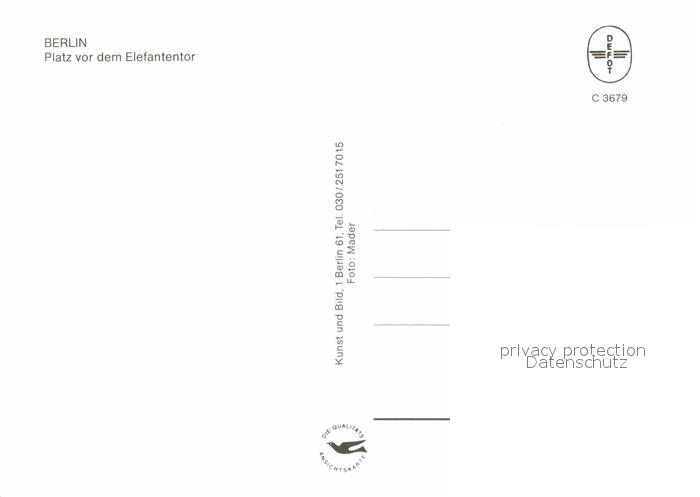 72902705 BERLIN CITY Platz vor dem Elefantentor postalisch nicht gelaufen Erhaltung siehe scans [AndreD76] KatCode: 11110011000000