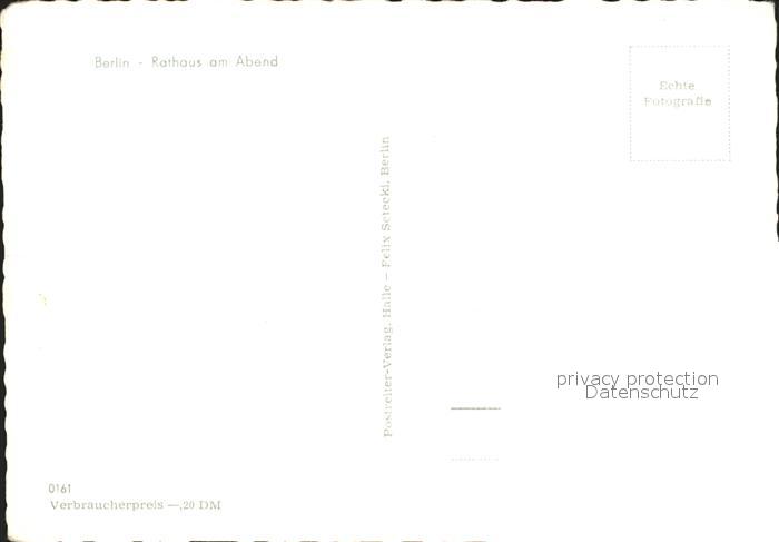72008077 BERLIN CITY Rathaus am Abend postalisch nicht gelaufen Erhaltung siehe scans KatCode: 11110011000000